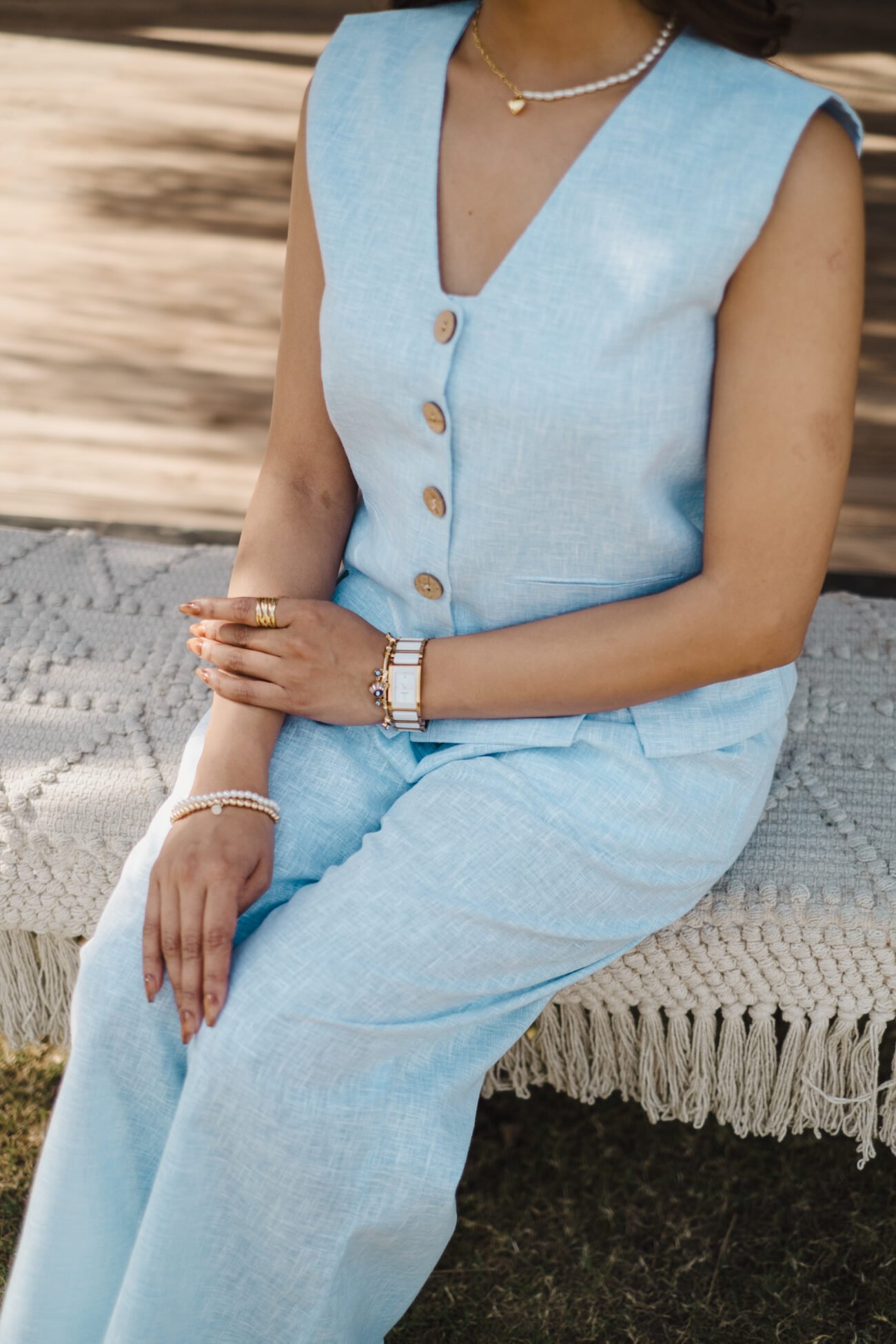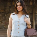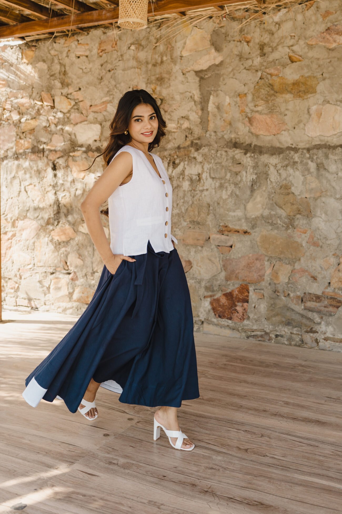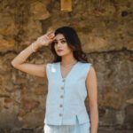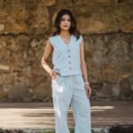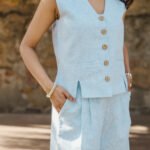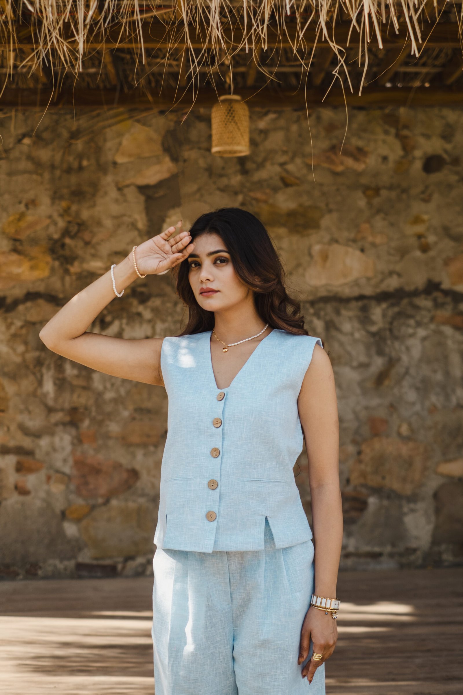 Pattern: Solid linen waistcoat with front and back slit detail