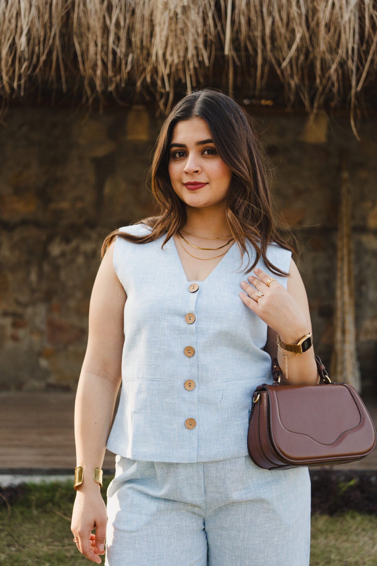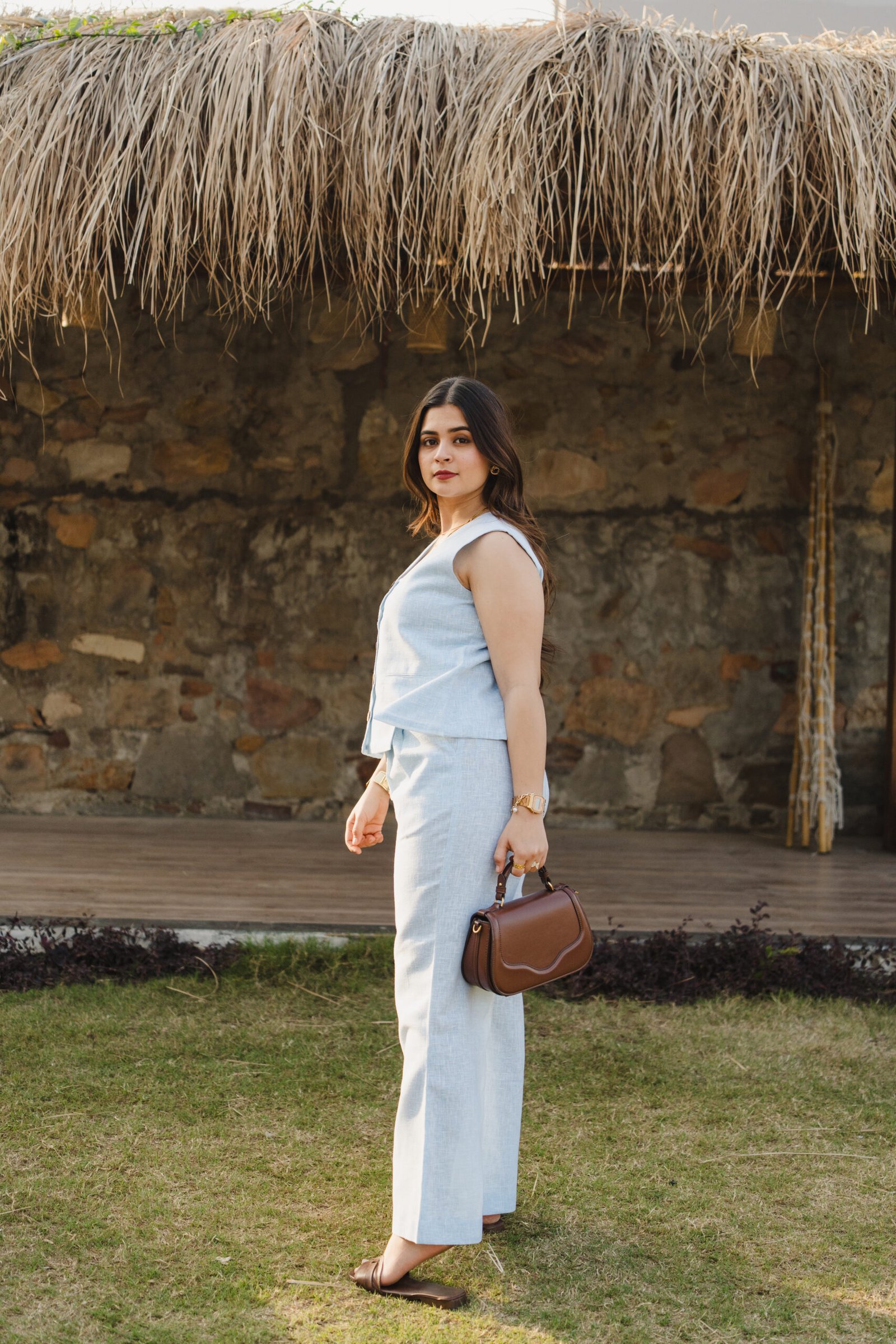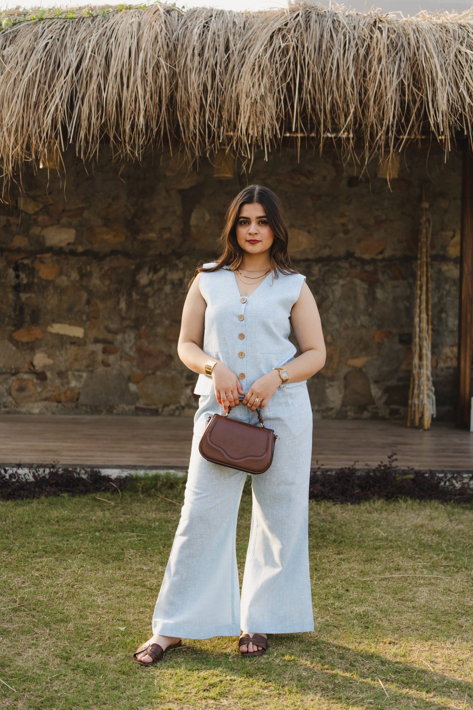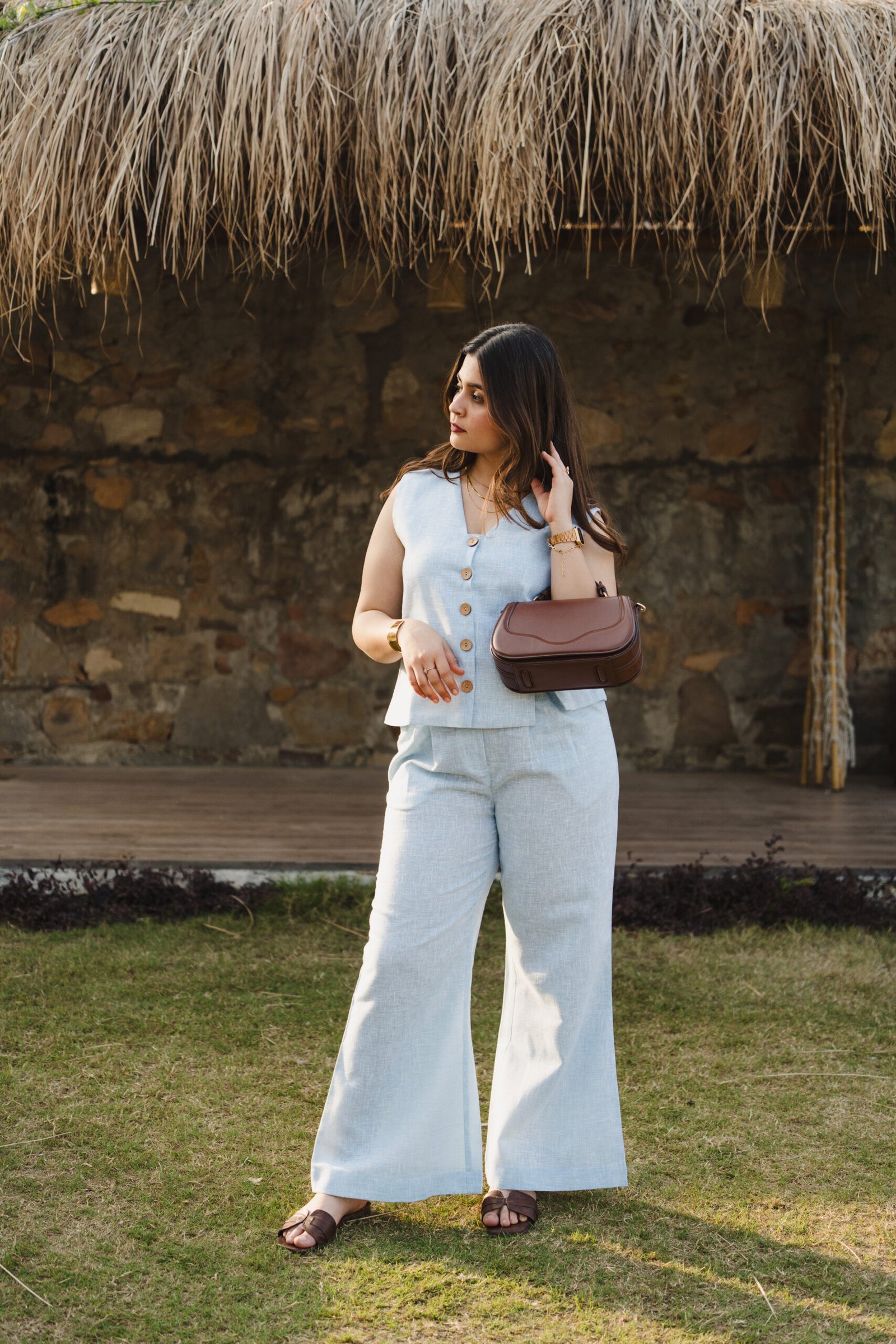 Pattern: Solid linen waistcoat with front and back slit detail